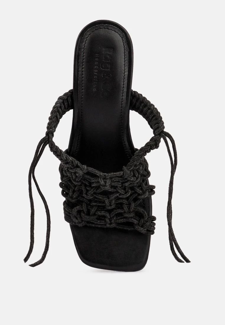 BEROE Black Braided Handcrafted Lace Up Sandal
