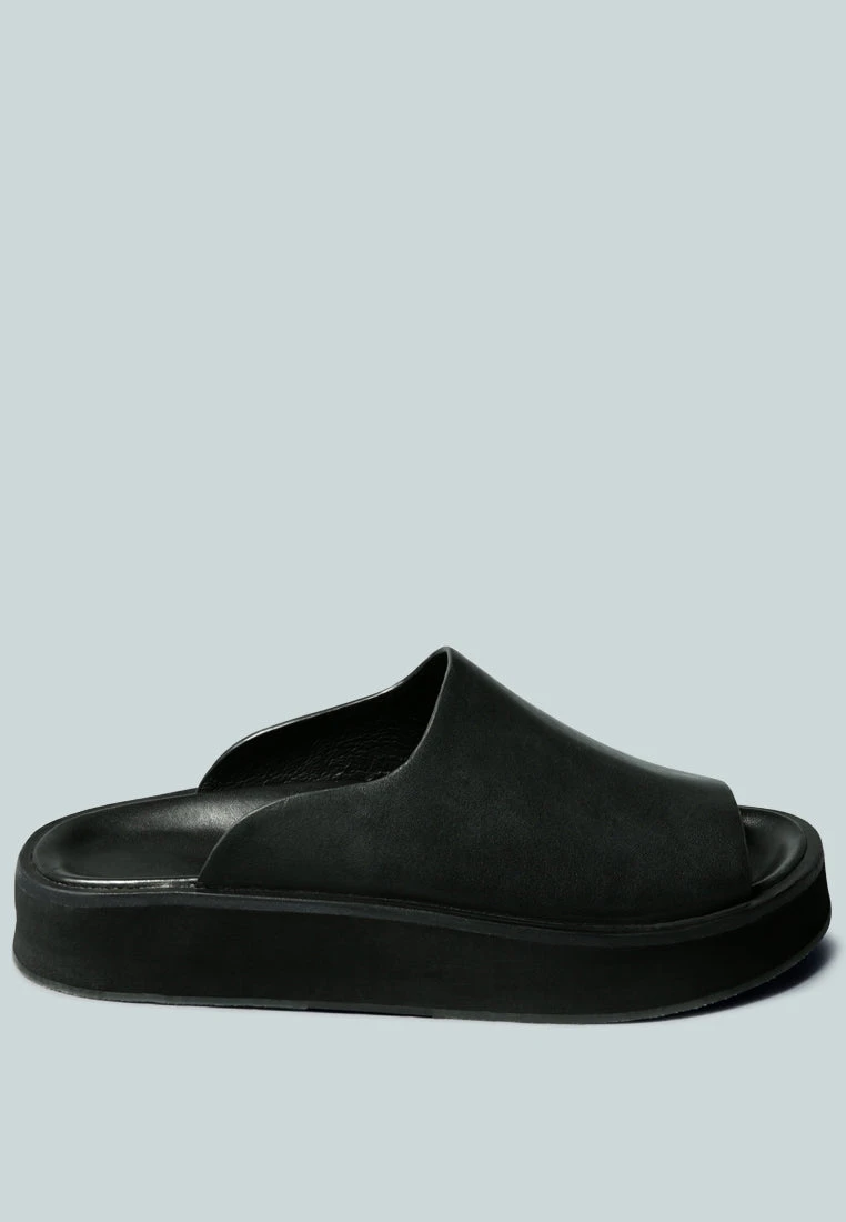 The Black Minimalist Slip-On with curved cuts and molded footbed for great comfort and grip. Handcrafted to perfection and aesthetical finish. For those who treat comfort as a necessary luxury – pair chunky platforms with a classic minimalist cut slip-on design.