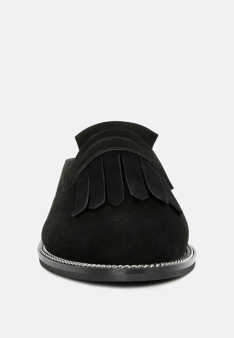 The Suave Black mule in genuine suede is an ideal addition to your 9 to 5 and beyond look. A very comfortable pick with smooth leather construction, gilded insole with support, and gripping German sole that supports. From the day at work to an evening walk by the home, be comfortable and at ease with this pair of genuine leather Mule. Soothes tired feet and is all delight with the premium handmade aesthetic.