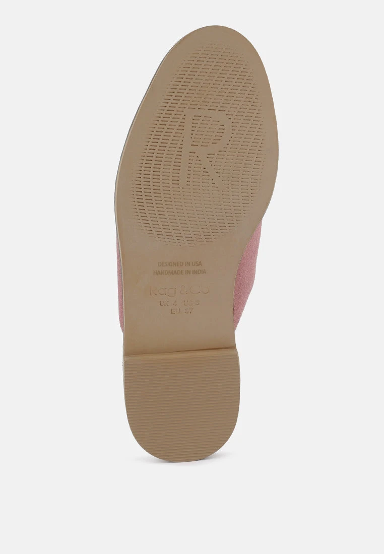 Decorated with tiny studs along with the insole frame, this fine suede mules in soft dusty pink is a certain aesthetic you would definitely love! Sets well on the feet, and is for all-day wear.