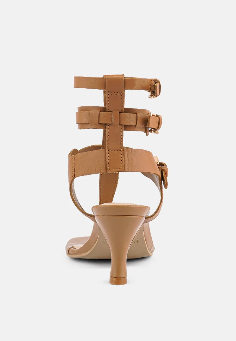 Buckled thong sandals, which wrap the ankle in style – have metallic pin buckle details which add to the look and accessibility. The cut out style sandal has open toe and heel and looks stylish on feet with little kitten heels.