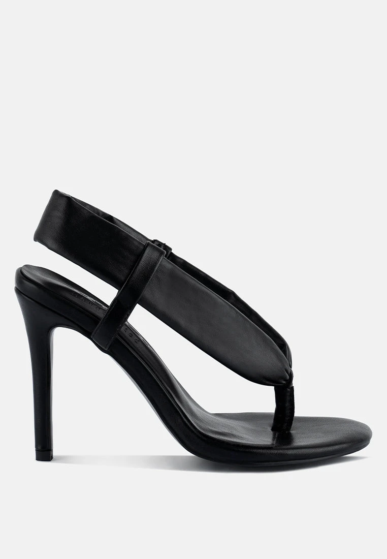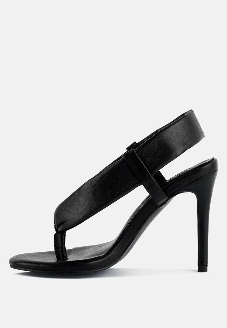 The thong sandals with padded strap detail look sophisticated and posh with the stiletto heels. An ideal choice for semi-formal events, the light cushion insoles also make them comfortable to wear.